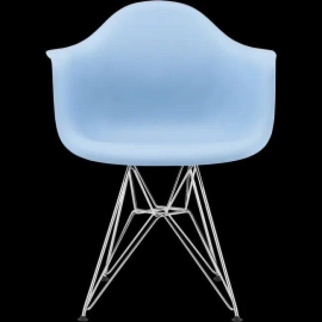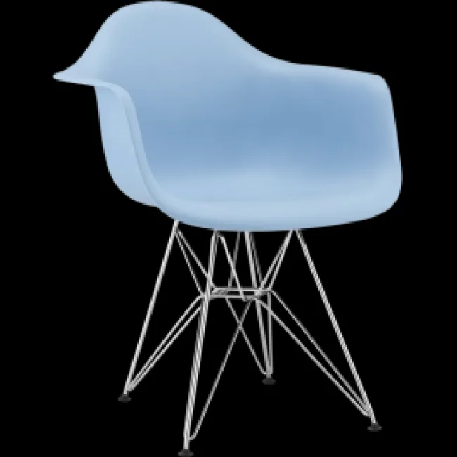 - Eames-inspired DAR arm chair in bold blue pigmented ABS shell (durable colour retention).