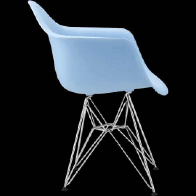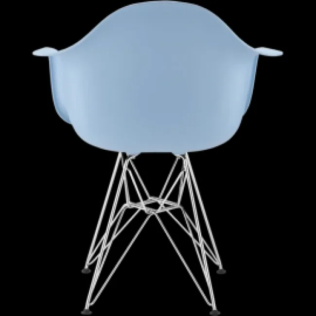 The Modborn Eames Style Dining DAR Arm Chair Blue blends mid-century silhouette with modern materials. Its pigmented molded shell preserves colour over time while the chrome Eiffel base provides a clean, lightweight profile that suits dining rooms, kitchens, modern home offices and minimalist interiors.
