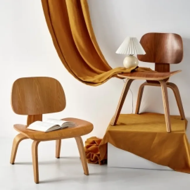 Explore the walnut veneer up close: the fine grain and layered plywood edge reveal the build approach that gives the LCW its signature profile. The molded seat/back construction uses multiple compressed plywood layers for resilience and comfort; the finish keeps the surface visually warm while remaining practical for everyday use. For specific cleaning and care guidance check the merchant product page—this block highlights the material detail buyers consider when choosing a long-lasting dining or lounge chair.