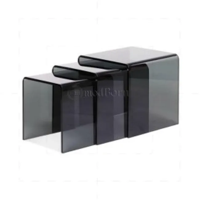 - Stackable nest of 3 coffee/side tables in grey toughened bent glass