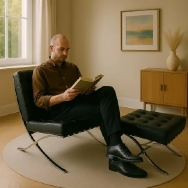 Breve sintesi: un classico ispirato alle linee lounge, costruzione in multistrato di noce, cuscini in memory foam e base in alluminio lucidato. Garanzia 5 year warranty e 14 day return policy; spedizioni in UE disponibili.